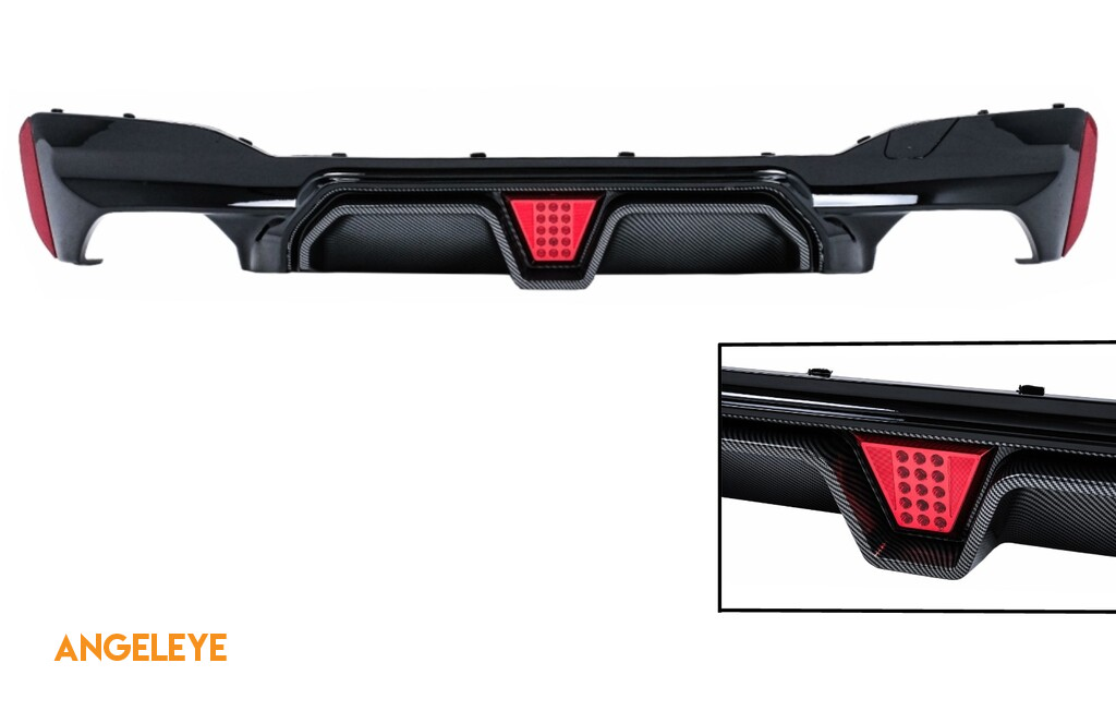 Difuzor Bara Spate cu LED compatibil cu BMW Seria 5 G30 G31 (2017-2024) M5 Design Negru Lucios cu Insertie Carbon