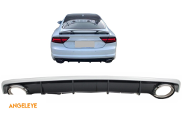 Difuzor Bara Spate si Ornamente Evacuare compatibil cu Audi A7 4G Facelift (2015+) RS7 Design doar pentru S7 S-line