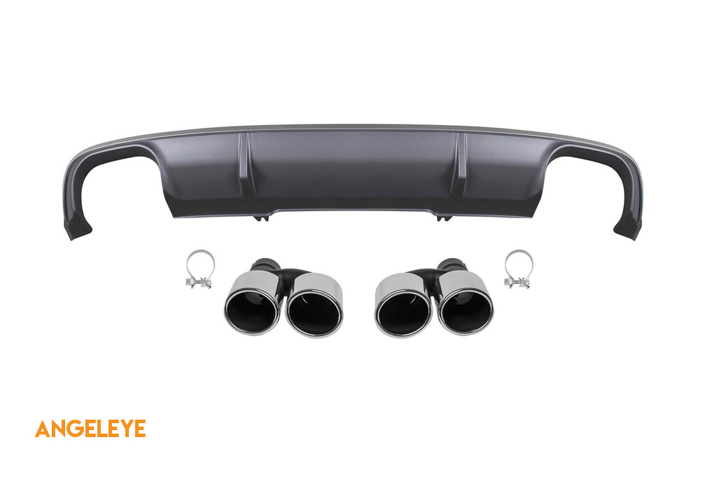 Difuzor tip S4 cu capete cromate potrivit pentru bara de protecție spate standard a Audi A4 B9 sedan, break 2015-2019 -oo--oo-