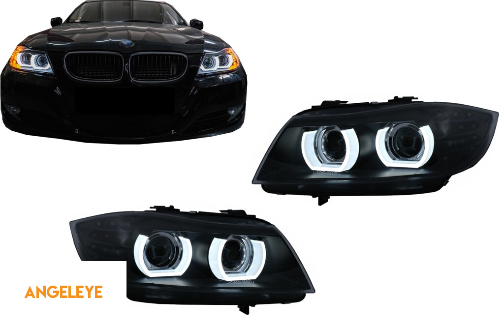 Faruri Xenon 3D Angel Eyes LED DRL compatibil cu BMW Seria 3 E90 E91 (2008-2011) Negru