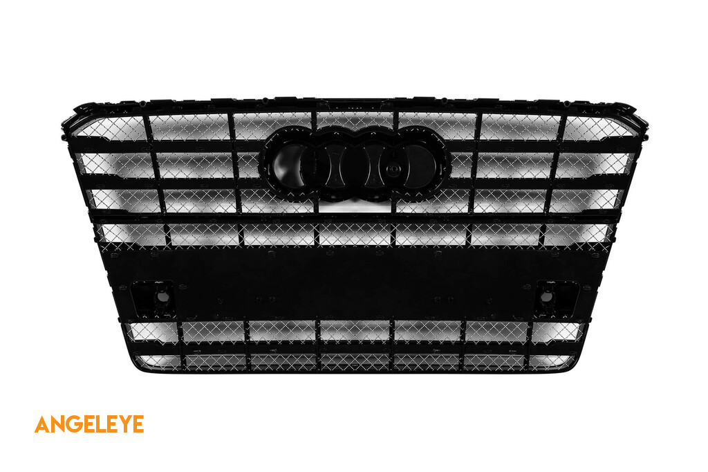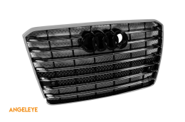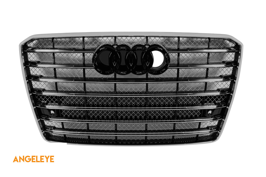 Grilă tip W12 crom/neagră potrivită pentru Audi A8 2015-2017 cu deschidere pentru vedere nocturnă, cu PDC, pentru bara de protecție standard