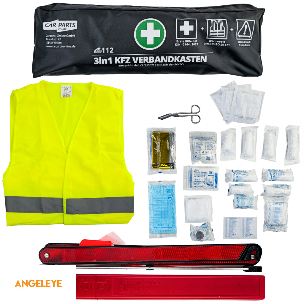 Acest set practic de siguranță auto 3 în 1 combină toate componentele legale necesare pentru vehiculul dumneavoastră într-un set compact. Ideal pentru mașini, break-uri, furgonete și autoutilitare – totul la îndemână și conform StVZO.