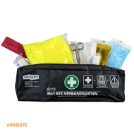 Kit de prim ajutor 3 în 1 pentru mașină – Prim ajutor DIN 13164 | Vestă de siguranță & Triunghi de avertizare | Negru