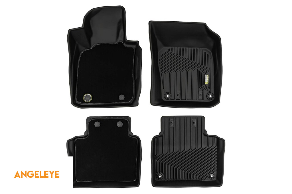 Maturi din cauciuc și covor 2 în 1 potrivite pentru Volvo S90 sedan, V90 wagon după 2016, din seria Frogum 5D Race Rock, set de 4 piese, culoare neagră