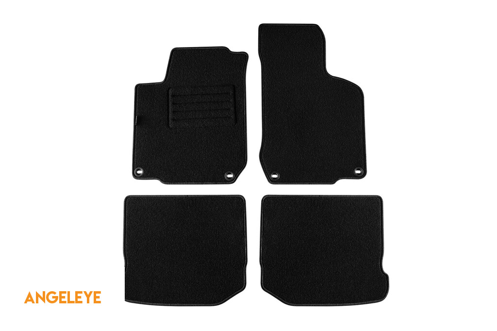 Mochete din carpetă cu două straturi de la Petex, țesătură Rex potrivită pentru VW Golf IV 1998-2003, Beetle 1998-2011, Bora 1998-2005, negre cu deschideri ovale, set de 4 bucăți, negre