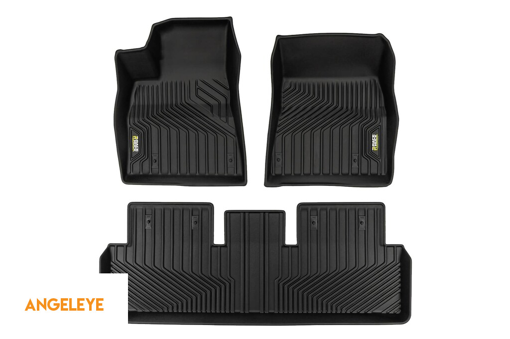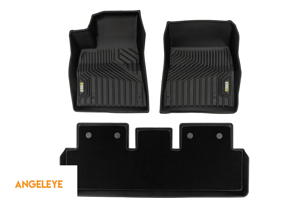 Mochete din cauciuc și covor 2 în 1 potrivite pentru Tesla Model 3 2017-2023, versiune fără pompă de căldură, din seria Frogum 5D Race Rock, set de 3 piese, culoare neagră