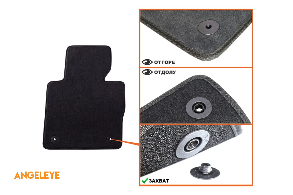Un material textil de înaltă calitate, cu trei straturi, este utilizat în producția lor, contribuind la o durabilitate mai bună și o durată lungă de viață. Covorașele pot fi instalate direct, fără a necesita tăiere sau ajustări suplimentare. Pe anumite modele, sunt prevăzute poziții marcate pentru găurile de fixare pentru o atașare mai sigură la podeaua vehiculului.