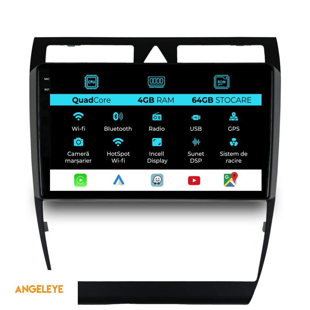 Navigatie Dedicata Audi A6 C5 (2000-2004), QuadCore, 9Inch, 4Gb Ram, 64Gb Stocare, Carplay