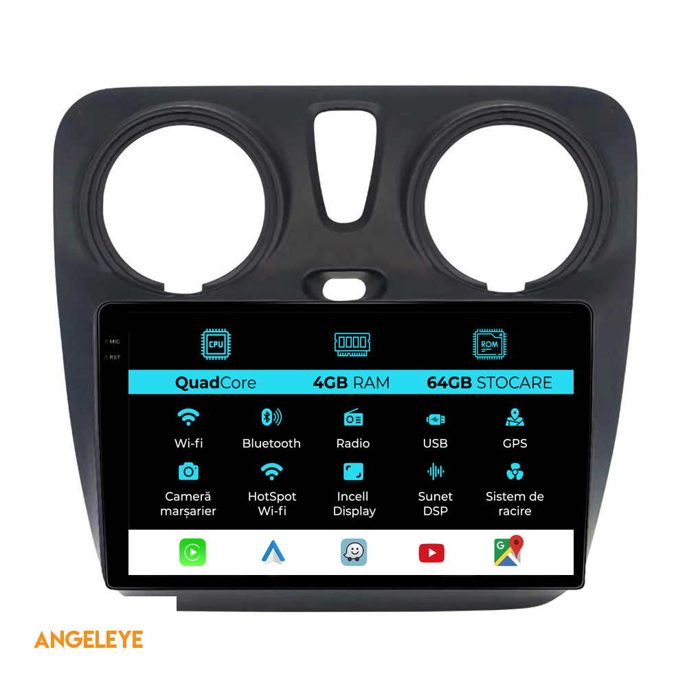 Sistem de operare: Android 13 Procesor: Quad-core 1.5Ghz Memorie RAM: 4GB Stocare interna (ROM): 64GB Dimensiune Display: 9 Inch Rezolutie ecran: 1360x800p Bluetooth: Bluetooth pentru apeluri, descarcare agenda telefonica si redare muzica WiFi: Da (Integrat) Slot Sim 4G: Nu Conectivitate retea: Hotspot telefon, router extern, dongle 3G sau 4G, CarPlay Android Auto Microfon: Microfon integrat, cu posibilitate de conectare microfon extern Alimentare: 12V Putere audio: 4x45W Egalizator DSP: Procesor de sunet digital (DSP EQ) Compatibilitate USB SD: Compatibil cu USB de pana la 128GB, suport SD prin adaptor USB Compatibilitate aplicatii Android: Compatibil cu majoritatea aplicatiilor Android din Google Play Compatibilitate CarPlay si Android Auto: Da, compatibil cu iOS (CarPlay) si Android (Android Auto) Suport pentru limbi:a Romana, Engleza, Maghiara, Spaniola, Italiana, Germana, etc. Tip ecran: TouchScreen capacitiv, multi-touch, IPS Setari luminozitate: Da Radio RDS: Da Iesire subwoofer RCA: Da Iesire video RCA: Da, cu ajutorul unui adaptor USB Iesire audio RCA: Da GPS: Da, (Google Maps, Waze, HereWeGo) Senzori de parcare: Da (Preluare senzori de parcare cu afisaj unde este cazul) Control volan: Da (Preluare comenzi volan cu canbus sau analogic unde este cazul) Compatibilitate camera DVR: Da Compatibilitate camera marsarier: Da Manual de utilizare: Da Continut pachet: Navigatie Android Rama adaptoare Cablaj de alimentare Antena GPS Conectori RCA Cablaj pentru camera de marsarier, 2 cabluri USB Canbus (doar daca este cazul) Certificat de garantie Factura fiscala Navigatia este compatibila cu urmatoarele marci auto : Dacia: Dokker (2012 - 2020) Lodgy (2012 - 2020)