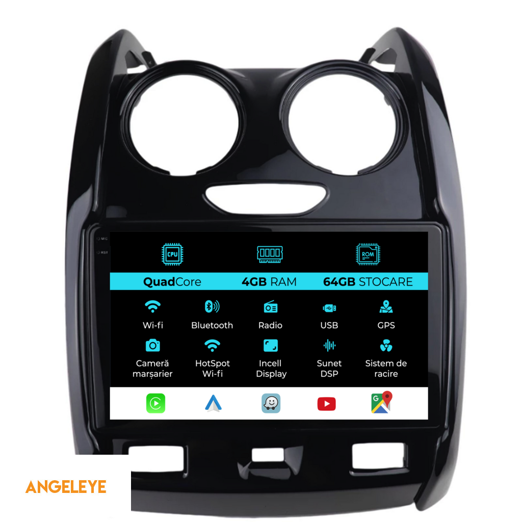 Sistem de operare: Android 13 Procesor: Quad-core 1.5Ghz Memorie RAM: 4GB Stocare interna (ROM): 64GB Dimensiune Display: 9 Inch Rezolutie ecran: 1360x800p Bluetooth: Bluetooth pentru apeluri, descarcare agenda telefonica si redare muzica WiFi: Da (Integrat) Slot Sim 4G: Nu Conectivitate retea: Hotspot telefon, router extern, dongle 3G sau 4G, CarPlay Android Auto Microfon: Microfon integrat, cu posibilitate de conectare microfon extern Alimentare: 12V Putere audio: 4x45W Egalizator DSP: Procesor de sunet digital (DSP EQ) Compatibilitate USB SD: Compatibil cu USB de pana la 128GB, suport SD prin adaptor USB Compatibilitate aplicatii Android: Compatibil cu majoritatea aplicatiilor Android din Google Play Compatibilitate CarPlay si Android Auto: Da, compatibil cu iOS (CarPlay) si Android (Android Auto) Suport pentru limbi:a Romana, Engleza, Maghiara, Spaniola, Italiana, Germana, etc. Tip ecran: TouchScreen capacitiv, multi-touch, IPS Setari luminozitate: Da Radio RDS: Da Iesire subwoofer RCA: Da Iesire video RCA: Da, cu ajutorul unui adaptor USB Iesire audio RCA: Da GPS: Da, (Google Maps, Waze, HereWeGo) Senzori de parcare: Da (Preluare senzori de parcare cu afisaj unde este cazul) Control volan: Da (Preluare comenzi volan cu canbus sau analogic unde este cazul) Compatibilitate camera DVR: Da Compatibilitate camera marsarier: Da Manual de utilizare: Da Continut pachet: Navigatie Android Rama adaptoare Cablaj de alimentare Antena GPS Conectori RCA Cablaj pentru camera de marsarier, 2 cabluri USB Canbus (doar daca este cazul) Certificat de garantie Factura fiscala Navigatia este compatibila cu urmatoarele marci auto : Dacia: Duster (2010-2020)