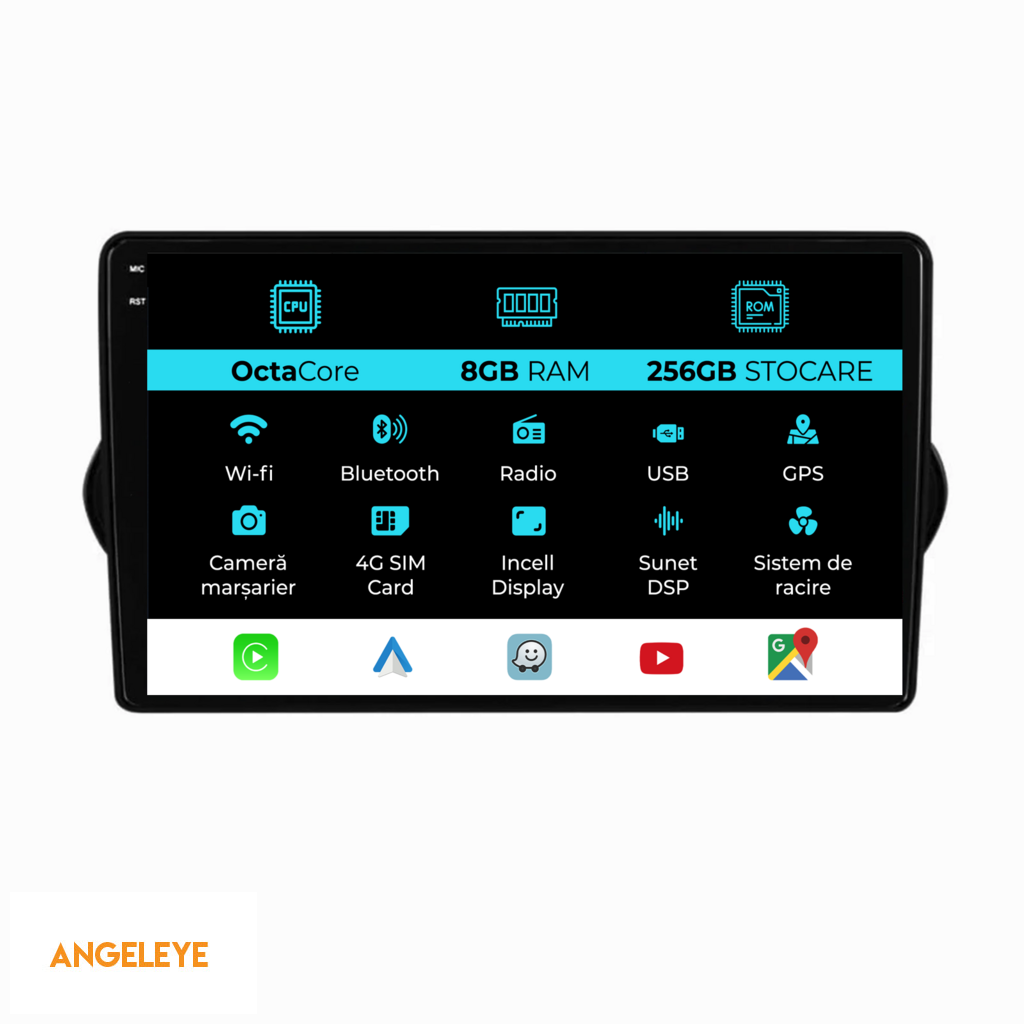 Sistem de operare: Android 13 Procesor: Octa-core 1.8Ghz Memorie RAM: 8GB Stocare interna (ROM): 256GB Dimensiune Display: 9 Inch Rezolutie ecran: 1360x8000p Bluetooth: Bluetooth pentru apeluri, descarcare agenda telefonica si redare muzica WiFi: Da (Integrat) Slot Sim 4G: Da Conectivitate retea: 4G, Hotspot telefon, router extern, dongle 3G sau 4G, CarPlay Android Auto Microfon: Microfon integrat, cu posibilitate de conectare microfon extern Alimentare: 12V Putere audio: 4x45W Egalizator DSP: Procesor de sunet digital (DSP EQ) Compatibilitate USB SD: Compatibil cu USB de pana la 128GB, suport SD prin adaptor USB Compatibilitate aplicatii Android: Compatibil cu majoritatea aplicatiilor Android din Google Play Compatibilitate CarPlay si Android Auto: Da, compatibil cu iOS (CarPlay) si Android (Android Auto) Suport pentru limbi:a Romana, Engleza, Maghiara, Spaniola, Italiana, Germana, etc. Tip ecran: TouchScreen capacitiv, multi-touch, IPS Setari luminozitate: Da Radio RDS: Da Iesire subwoofer RCA: Da Iesire video RCA: Da, cu ajutorul unui adaptor USB Iesire audio RCA: Da GPS: Da, (Google Maps, Waze, HereWeGo) Senzori de parcare: Da (Preluare senzori de parcare cu afisaj unde este cazul) Control volan: Da (Preluare comenzi volan cu canbus sau analogic unde este cazul) Compatibilitate camera DVR: Da Compatibilitate camera marsarier: Da Manual de utilizare: Da Continut pachet: Navigatie Android Rama adaptoare Cablaj de alimentare Antena GPS Antena 4G Conectori RCA Cablaj pentru camera de marsarier, 2 cabluri USB Canbus (doar daca este cazul) Certificat de garantie Factura fiscala Navigatia este compatibila cu urmatoarele marci auto : Fiat: Tipo (2015-2021)
