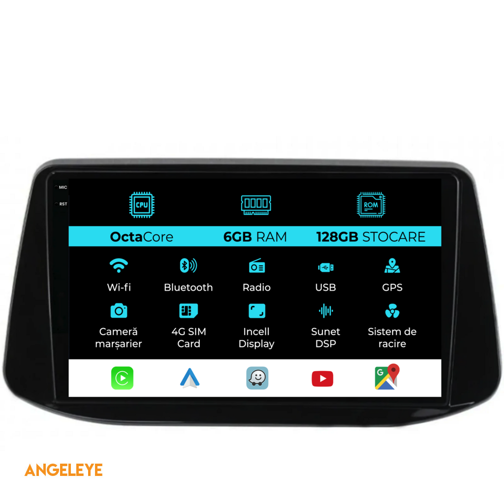 Sistem de operare: Android 13 Procesor: Octa-core 1.6Ghz Memorie RAM: 6GB Stocare interna (ROM): 128GB Dimensiune Display: 9 Inch Rezolutie ecran: 1360x800p Bluetooth: Bluetooth pentru apeluri, descarcare agenda telefonica si redare muzica WiFi: Da (Integrat) Slot Sim 4G: Da Conectivitate retea: 4G, Hotspot telefon, router extern, dongle 3G sau 4G, CarPlay Android Auto Microfon: Microfon integrat, cu posibilitate de conectare microfon extern Alimentare: 12V Putere audio: 4x45W Egalizator DSP: Procesor de sunet digital (DSP EQ) Compatibilitate USB SD: Compatibil cu USB de pana la 128GB, suport SD prin adaptor USB Compatibilitate aplicatii Android: Compatibil cu majoritatea aplicatiilor Android din Google Play Compatibilitate CarPlay si Android Auto: Da, compatibil cu iOS (CarPlay) si Android (Android Auto) Suport pentru limbi Romana, Engleza, Maghiara, Spaniola, Italiana, Germana, etc. Tip ecran: TouchScreen capacitiv, multi-touch, IPS Setari luminozitate: Da Radio RDS: Da Iesire subwoofer RCA: Da Iesire video RCA: Da, cu ajutorul unui adaptor USB Iesire audio RCA: Da GPS: Da, (Google Maps, Waze, HereWeGo) Senzori de parcare: Da (Preluare senzori de parcare cu afisaj unde este cazul) Control volan: Da (Preluare comenzi volan cu canbus sau analogic unde este cazul) Compatibilitate camera DVR: Da Compatibilitate camera marsarier: Da Manual de utilizare: Da Continut pachet: Navigatie Android Rama adaptoare Cablaj de alimentare Antena GPS Antena 4G Conectori RCA Cablaj pentru camera de marsarier, 2 cabluri USB Canbus (doar daca este cazul) Certificat de garantie Factura fiscala Navigatia este compatibila cu urmatoarele marci auto : Hyundai : I30 (2017-2022)