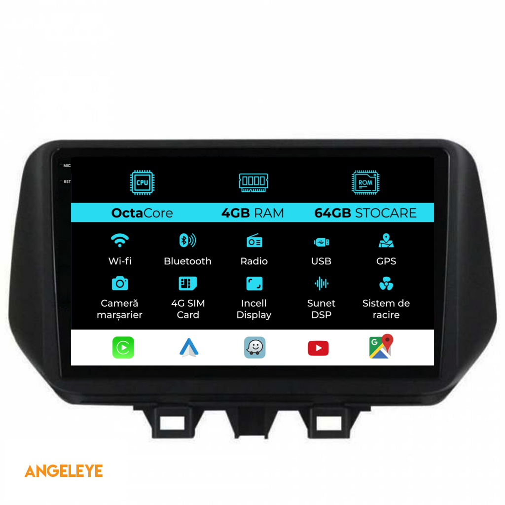 Sistem de operare: Android 13 Procesor: Octa-core Memorie RAM: 4GB Stocare interna (ROM): 64GB Dimensiune Display: 9 Inch Rezolutie ecran: 1360x800p Bluetooth: Bluetooth pentru apeluri, descarcare agenda telefonica si redare muzica WiFi: Da (Integrat) Slot Sim 4G: Da Conectivitate retea: 4G, Hotspot telefon, router extern, dongle 3G sau 4G, CarPlay Android Auto Microfon: Microfon integrat, cu posibilitate de conectare microfon extern Alimentare: 12V Putere audio: 4x45W Egalizator DSP: Procesor de sunet digital (DSP EQ) Compatibilitate USB SD: Compatibil cu USB de pana la 128GB, suport SD prin adaptor USB Compatibilitate aplicatii Android: Compatibil cu majoritatea aplicatiilor Android din Google Play Compatibilitate CarPlay si Android Auto: Da, compatibil cu iOS (CarPlay) si Android (Android Auto) Suport pentru limbi Romana, Engleza, Maghiara, Spaniola, Italiana, Germana, etc. Tip ecran: TouchScreen capacitiv, multi-touch, IPS Setari luminozitate: Da Radio RDS: Da Iesire subwoofer RCA: Da Iesire video RCA: Da, cu ajutorul unui adaptor USB Iesire audio RCA: Da GPS: Da, (Google Maps, Waze, HereWeGo) Senzori de parcare: Da (Preluare senzori de parcare cu afisaj unde este cazul) Control volan: Da (Preluare comenzi volan cu canbus sau analogic unde este cazul) Compatibilitate camera DVR: Da Compatibilitate camera marsarier: Da Manual de utilizare: Da Continut pachet: Navigatie Android Rama adaptoare Cablaj de alimentare Antena GPS Antena 4G Conectori RCA Cablaj pentru camera de marsarier, 2 cabluri USB Canbus (doar daca este cazul) Certificat de garantie Factura fiscala Navigatia este compatibila cu urmatoarele marci auto : Hyundai : Tucson (2018-2020)