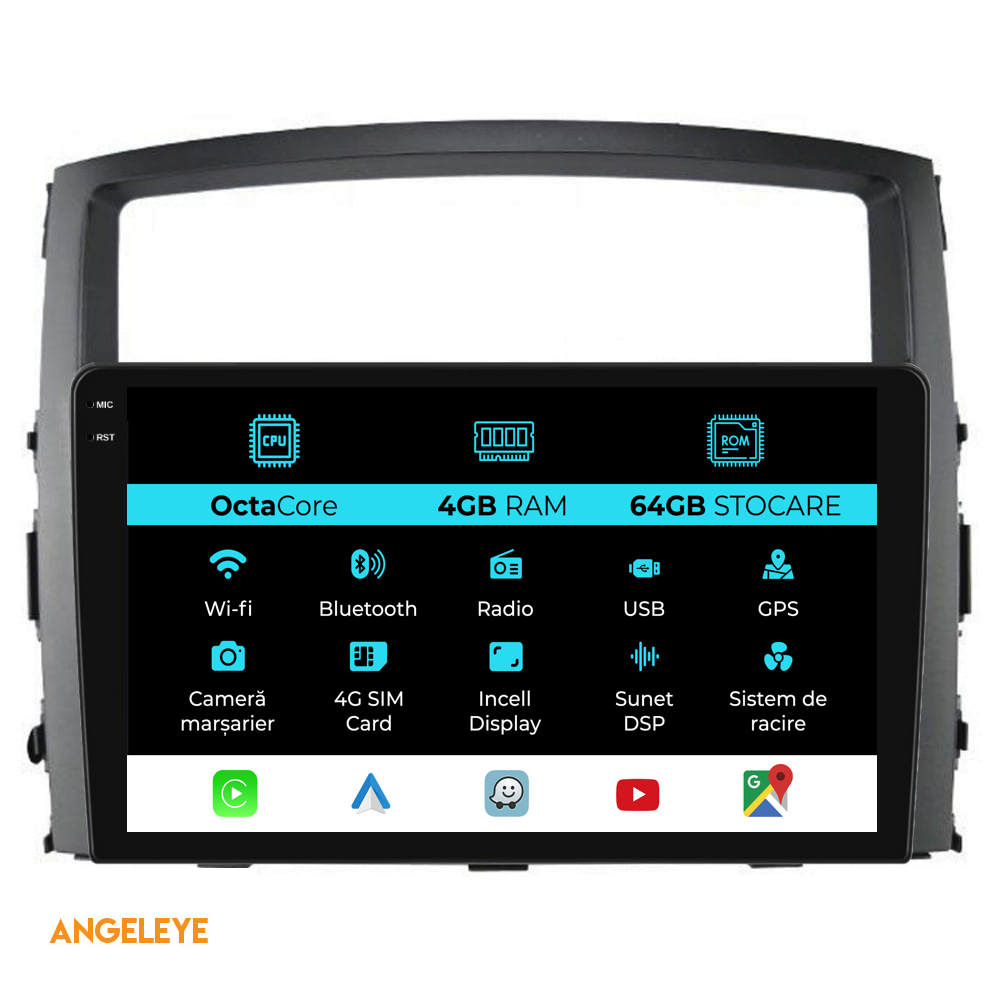 Sistem de operare: Android 13 Procesor: Octa-core Memorie RAM: 4GB Stocare interna (ROM): 64GB Dimensiune Display: 9 Inch Rezolutie ecran: 1360x800p Bluetooth: Bluetooth pentru apeluri, descarcare agenda telefonica si redare muzica WiFi: Da (Integrat) Slot Sim 4G: Da Conectivitate retea: 4G, Hotspot telefon, router extern, dongle 3G sau 4G, CarPlay Android Auto Microfon: Microfon integrat, cu posibilitate de conectare microfon extern Alimentare: 12V Putere audio: 4x45W Egalizator DSP: Procesor de sunet digital (DSP EQ) Compatibilitate USB SD: Compatibil cu USB de pana la 128GB, suport SD prin adaptor USB Compatibilitate aplicatii Android: Compatibil cu majoritatea aplicatiilor Android din Google Play Compatibilitate CarPlay si Android Auto: Da, compatibil cu iOS (CarPlay) si Android (Android Auto) Suport pentru limbi Romana, Engleza, Maghiara, Spaniola, Italiana, Germana, etc. Tip ecran: TouchScreen capacitiv, multi-touch, IPS Setari luminozitate: Da Radio RDS: Da Iesire subwoofer RCA: Da Iesire video RCA: Da, cu ajutorul unui adaptor USB Iesire audio RCA: Da GPS: Da, (Google Maps, Waze, HereWeGo) Senzori de parcare: Da (Preluare senzori de parcare cu afisaj unde este cazul) Control volan: Da (Preluare comenzi volan cu canbus sau analogic unde este cazul) Compatibilitate camera DVR: Da Compatibilitate camera marsarier: Da Manual de utilizare: Da Continut pachet: Navigatie Android Rama adaptoare Cablaj de alimentare Antena GPS Antena 4G Conectori RCA Cablaj pentru camera de marsarier, 2 cabluri USB Canbus (doar daca este cazul) Certificat de garantie Factura fiscala Navigatia este compatibila cu urmatoarele marci auto : Mitsubishi: Pajero (2006 - 2018)