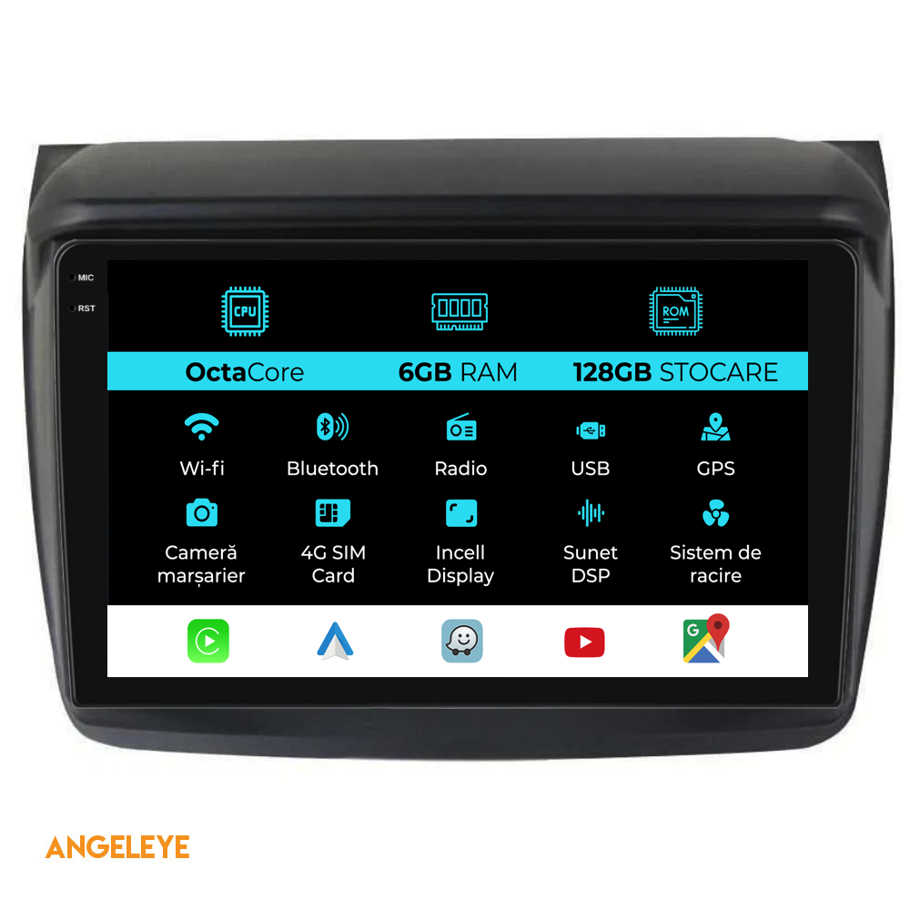 Sistem de operare: Android 13 Procesor: Octa-core 1.6Ghz Memorie RAM: 6GB Stocare interna (ROM): 128GB Dimensiune Display: 9 Inch Rezolutie ecran: 1360x800p Bluetooth: Bluetooth pentru apeluri, descarcare agenda telefonica si redare muzica WiFi: Da (Integrat) Slot Sim 4G: Da Conectivitate retea: 4G, Hotspot telefon, router extern, dongle 3G sau 4G, CarPlay Android Auto Microfon: Microfon integrat, cu posibilitate de conectare microfon extern Alimentare: 12V Putere audio: 4x45W Egalizator DSP: Procesor de sunet digital (DSP EQ) Compatibilitate USB SD: Compatibil cu USB de pana la 128GB, suport SD prin adaptor USB Compatibilitate aplicatii Android: Compatibil cu majoritatea aplicatiilor Android din Google Play Compatibilitate CarPlay si Android Auto: Da, compatibil cu iOS (CarPlay) si Android (Android Auto) Suport pentru limbi Romana, Engleza, Maghiara, Spaniola, Italiana, Germana, etc. Tip ecran: TouchScreen capacitiv, multi-touch, IPS Setari luminozitate: Da Radio RDS: Da Iesire subwoofer RCA: Da Iesire video RCA: Da, cu ajutorul unui adaptor USB Iesire audio RCA: Da GPS: Da, (Google Maps, Waze, HereWeGo) Senzori de parcare: Da (Preluare senzori de parcare cu afisaj unde este cazul) Control volan: Da (Preluare comenzi volan cu canbus sau analogic unde este cazul) Compatibilitate camera DVR: Da Compatibilitate camera marsarier: Da Manual de utilizare: Da Continut pachet: Navigatie Android Rama adaptoare Cablaj de alimentare Antena GPS Antena 4G Conectori RCA Cablaj pentru camera de marsarier, 2 cabluri USB Canbus (doar daca este cazul) Certificat de garantie Factura fiscala Navigatia este compatibila cu urmatoarele marci auto : Mitsubishi: Pajero Sport (2006-2013)