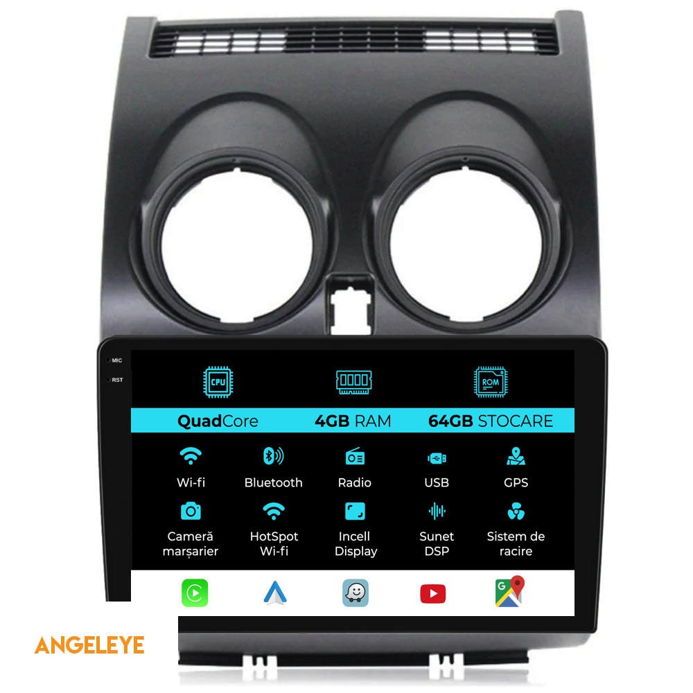Navigatie Dedicata Nissan Qashqai J10 (2007-2013),QuadCore, 9Inch, 4Gb Ram, 64Gb Stocare, Carplay
