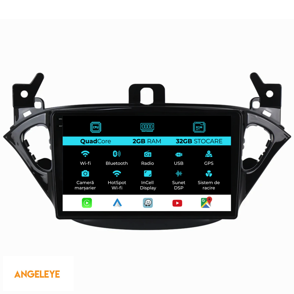 Sistem de operare: Android 13 Procesor: Quadcore Memorie RAM: 2GB Stocare interna (ROM): 32GB Dimensiune Display: 9 Inch Rezolutie ecran: 1360x800p Bluetooth: Bluetooth pentru apeluri, descarcare agenda telefonica si redare muzica WiFi: Da (Integrat) Slot Sim 4G: Nu Conectivitate retea: Hotspot telefon, router extern, dongle 3G sau 4G, CarPlay Android Auto Microfon: Microfon integrat, cu posibilitate de conectare microfon extern Alimentare: 12V Putere audio: 4x45W Egalizator DSP: Procesor de sunet digital (DSP EQ) Compatibilitate USB SD: Compatibil cu USB de pana la 128GB, suport SD prin adaptor USB Compatibilitate aplicatii Android: Compatibil cu majoritatea aplicatiilor Android din Google Play Compatibilitate CarPlay si Android Auto: Da, compatibil cu iOS (CarPlay) si Android (Android Auto) Suport pentru limbi:a Romana, Engleza, Maghiara, Spaniola, Italiana, Germana, etc. Tip ecran: TouchScreen capacitiv, multi-touch, IPS Setari luminozitate: Da Radio RDS: Da Iesire subwoofer RCA: Da Iesire video RCA: Da, cu ajutorul unui adaptor USB Iesire audio RCA: Da GPS: Da, (Google Maps, Waze, HereWeGo) Senzori de parcare: Da (Preluare senzori de parcare cu afisaj unde este cazul) Control volan: Da (Preluare comenzi volan cu canbus sau analogic unde este cazul) Compatibilitate camera DVR: Da Compatibilitate camera marsarier: Da Manual de utilizare: Da Continut pachet: Navigatie Android Rama adaptoare Cablaj de alimentare Antena GPS Conectori RCA Cablaj pentru camera de marsarier, 2 cabluri USB Canbus (doar daca este cazul) Certificat de garantie Factura fiscala Navigatia este compatibila cu urmatoarele marci auto : Opel: Corsa E (2014 - 2019) Adam (2012 - 2019)