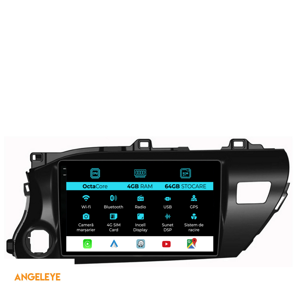 Navigatie Dedicata Toyota Hilux 2015+, 10Inch, 4Gb Ram, 64Gb Stocare, Carplay