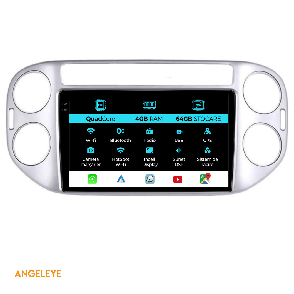 Sistem de operare: Android 13 Procesor: Quad-core 1.5Ghz Memorie RAM: 4GB Stocare interna (ROM): 64GB Dimensiune Display: 9 Inch Rezolutie ecran: 1360x800p Bluetooth: Bluetooth pentru apeluri, descarcare agenda telefonica si redare muzica WiFi: Da (Integrat) Slot Sim 4G: Nu Conectivitate retea: Hotspot telefon, router extern, dongle 3G sau 4G, CarPlay Android Auto Microfon: Microfon integrat, cu posibilitate de conectare microfon extern Alimentare: 12V Putere audio: 4x45W Egalizator DSP: Procesor de sunet digital (DSP EQ) Compatibilitate USB SD: Compatibil cu USB de pana la 128GB, suport SD prin adaptor USB Compatibilitate aplicatii Android: Compatibil cu majoritatea aplicatiilor Android din Google Play Compatibilitate CarPlay si Android Auto: Da, compatibil cu iOS (CarPlay) si Android (Android Auto) Suport pentru limbi:a Romana, Engleza, Maghiara, Spaniola, Italiana, Germana, etc. Tip ecran: TouchScreen capacitiv, multi-touch, IPS Setari luminozitate: Da Radio RDS: Da Iesire subwoofer RCA: Da Iesire video RCA: Da, cu ajutorul unui adaptor USB Iesire audio RCA: Da GPS: Da, (Google Maps, Waze, HereWeGo) Senzori de parcare: Da (Preluare senzori de parcare cu afisaj unde este cazul) Control volan: Da (Preluare comenzi volan cu canbus sau analogic unde este cazul) Compatibilitate camera DVR: Da Compatibilitate camera marsarier: Da Manual de utilizare: Da Continut pachet: Navigatie Android Rama adaptoare Cablaj de alimentare Antena GPS Conectori RCA Cablaj pentru camera de marsarier, 2 cabluri USB Canbus (doar daca este cazul) Certificat de garantie Factura fiscala Navigatia este compatibila cu urmatoarele marci auto : Volkswagen: Tiguan (2006-2016)
