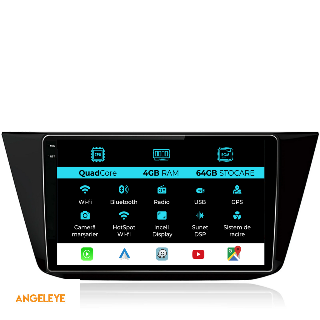 Sistem de operare: Android 13 Procesor: Quad-core 1.5Ghz Memorie RAM: 4GB Stocare interna (ROM): 64GB Dimensiune Display: 10 Inch Rezolutie ecran: 1280x800p Bluetooth: Bluetooth pentru apeluri, descarcare agenda telefonica si redare muzica WiFi: Da (Integrat) Slot Sim 4G: Nu Conectivitate retea: Hotspot telefon, router extern, dongle 3G sau 4G, CarPlay Android Auto Microfon: Microfon integrat, cu posibilitate de conectare microfon extern Alimentare: 12V Putere audio: 4x45W Egalizator DSP: Procesor de sunet digital (DSP EQ) Compatibilitate USB SD: Compatibil cu USB de pana la 128GB, suport SD prin adaptor USB Compatibilitate aplicatii Android: Compatibil cu majoritatea aplicatiilor Android din Google Play Compatibilitate CarPlay si Android Auto: Da, compatibil cu iOS (CarPlay) si Android (Android Auto) Suport pentru limbi:a Romana, Engleza, Maghiara, Spaniola, Italiana, Germana, etc. Tip ecran: TouchScreen capacitiv, multi-touch, IPS Setari luminozitate: Da Radio RDS: Da Iesire subwoofer RCA: Da Iesire video RCA: Da, cu ajutorul unui adaptor USB Iesire audio RCA: Da GPS: Da, (Google Maps, Waze, HereWeGo) Senzori de parcare: Da (Preluare senzori de parcare cu afisaj unde este cazul) Control volan: Da (Preluare comenzi volan cu canbus sau analogic unde este cazul) Compatibilitate camera DVR: Da Compatibilitate camera marsarier: Da Manual de utilizare: Da Continut pachet: Navigatie Android Rama adaptoare Cablaj de alimentare Antena GPS Conectori RCA Cablaj pentru camera de marsarier, 2 cabluri USB Canbus (doar daca este cazul) Certificat de garantie Factura fiscala Navigatia este compatibila cu urmatoarele marci auto : Volkswagen: Tiguan (2016 - 2023)