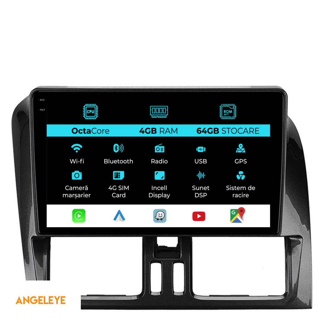 Sistem de operare: Android 13 Procesor: Octa-core Memorie RAM: 4GB Stocare interna (ROM): 64GB Dimensiune Display: 9 Inch Rezolutie ecran: 1360x800p Bluetooth: Bluetooth pentru apeluri, descarcare agenda telefonica si redare muzica WiFi: Da (Integrat) Slot Sim 4G: Da Conectivitate retea: 4G, Hotspot telefon, router extern, dongle 3G sau 4G, CarPlay Android Auto Microfon: Microfon integrat, cu posibilitate de conectare microfon extern Alimentare: 12V Putere audio: 4x45W Egalizator DSP: Procesor de sunet digital (DSP EQ) Compatibilitate USB SD: Compatibil cu USB de pana la 128GB, suport SD prin adaptor USB Compatibilitate aplicatii Android: Compatibil cu majoritatea aplicatiilor Android din Google Play Compatibilitate CarPlay si Android Auto: Da, compatibil cu iOS (CarPlay) si Android (Android Auto) Suport pentru limbi Romana, Engleza, Maghiara, Spaniola, Italiana, Germana, etc. Tip ecran: TouchScreen capacitiv, multi-touch, IPS Setari luminozitate: Da Radio RDS: Da Iesire subwoofer RCA: Da Iesire video RCA: Da, cu ajutorul unui adaptor USB Iesire audio RCA: Da GPS: Da, (Google Maps, Waze, HereWeGo) Senzori de parcare: Da (Preluare senzori de parcare cu afisaj unde este cazul) Control volan: Da (Preluare comenzi volan cu canbus sau analogic unde este cazul) Compatibilitate camera DVR: Da Compatibilitate camera marsarier: Da Manual de utilizare: Da Continut pachet: Navigatie Android Rama adaptoare Cablaj de alimentare Antena GPS Antena 4G Conectori RCA Cablaj pentru camera de marsarier, 2 cabluri USB Canbus (doar daca este cazul) Certificat de garantie Factura fiscala Navigatia este compatibila cu urmatoarele marci auto : Volvo: XC60 (2008 - 2017)