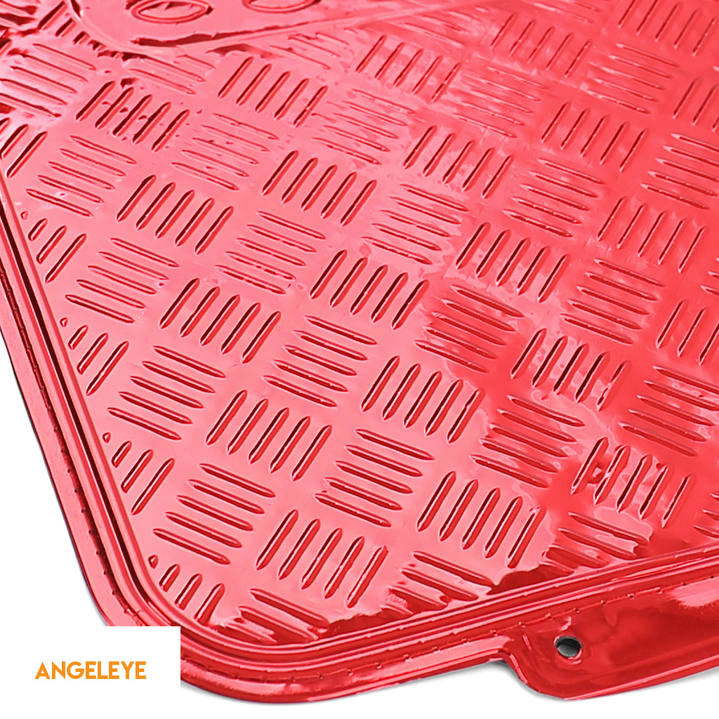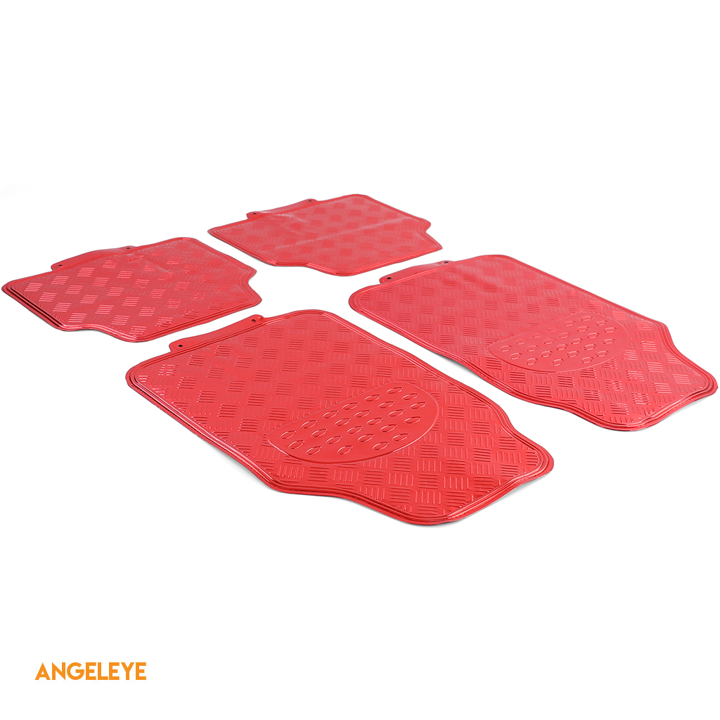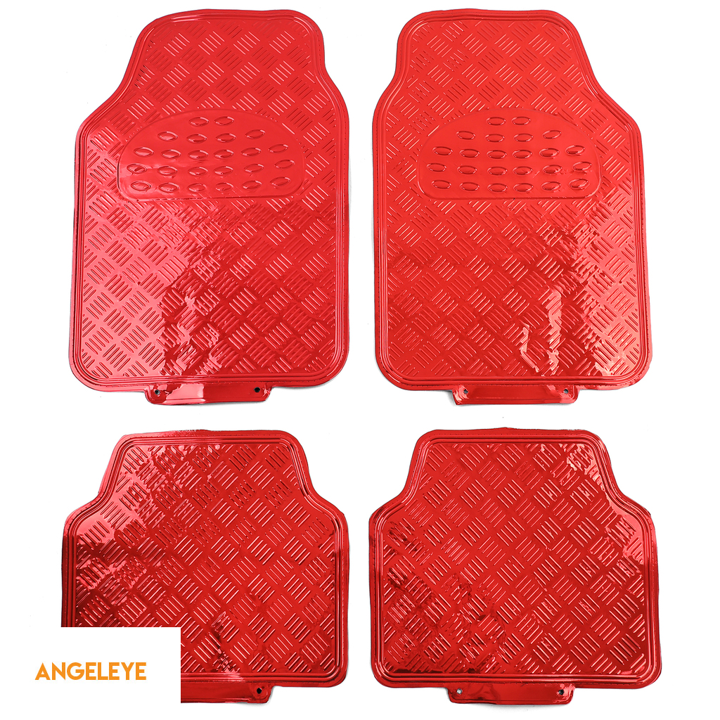 Set de covorașe auto 4 piese – Aspect placă de aluminiu | Roșu cromat | Universal
