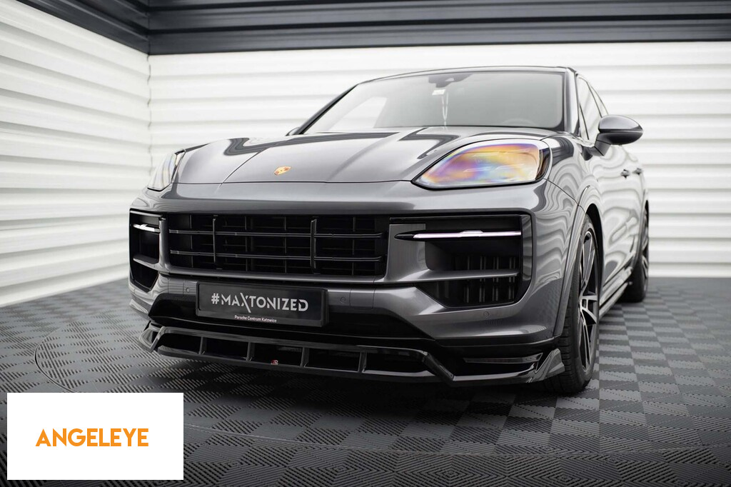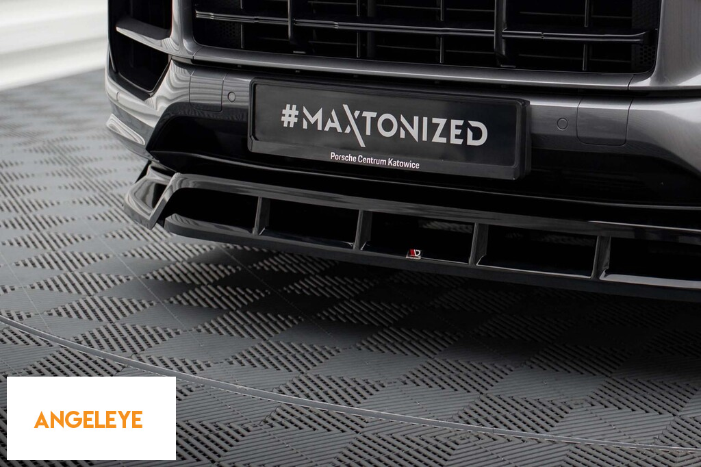 Spoiler Maxton Design potrivit pentru bara de protecție frontală a Porsche Cayenne Sport Design, S Sport Design, E-Hybrid, Turbo E-Hybrid după 2023, lac negru