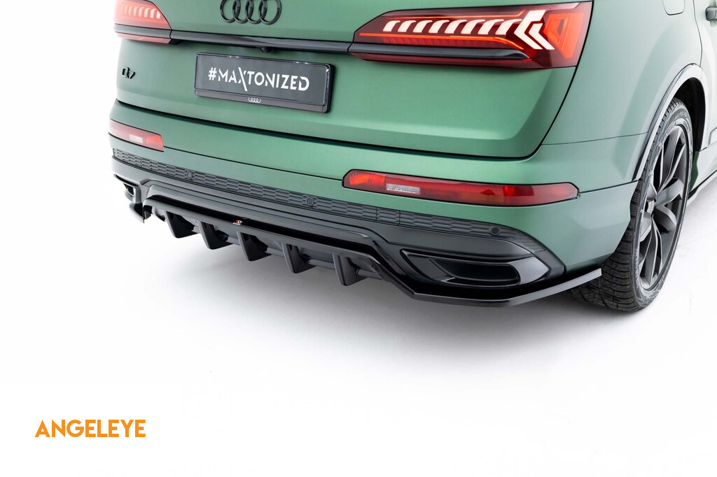 Spoiler Maxton Design potrivit pentru bara de protecție S-Line din spate a Audi Q7 2019-2023, lac negru