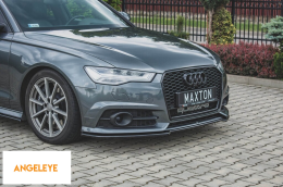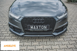Spoiler Maxton Design potrivit pentru bara frontală S6, S-Line a Audi A6 C7 sedan, Avant 2014-2017, lac negru