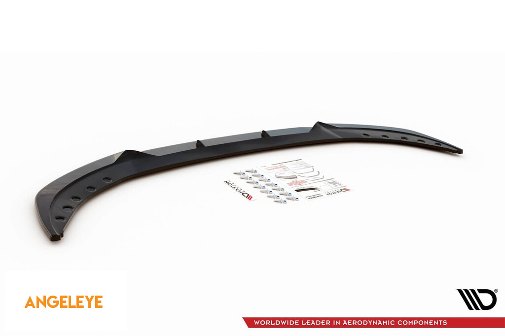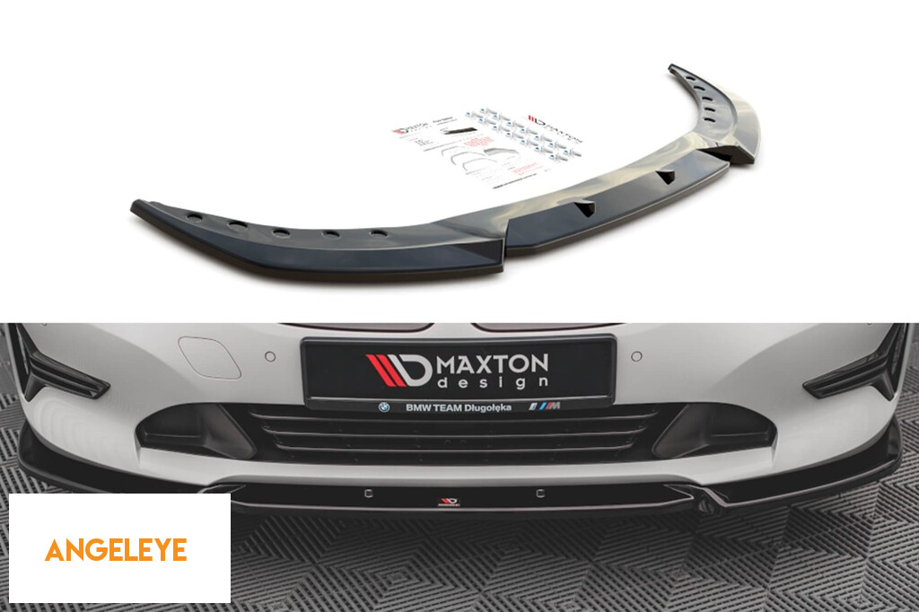 Spoiler Maxton Design versiunea 1 potrivit pentru bara de protecție frontală standard a BMW Seria 3 G20 sedan, G21 break după 2018, lac negru