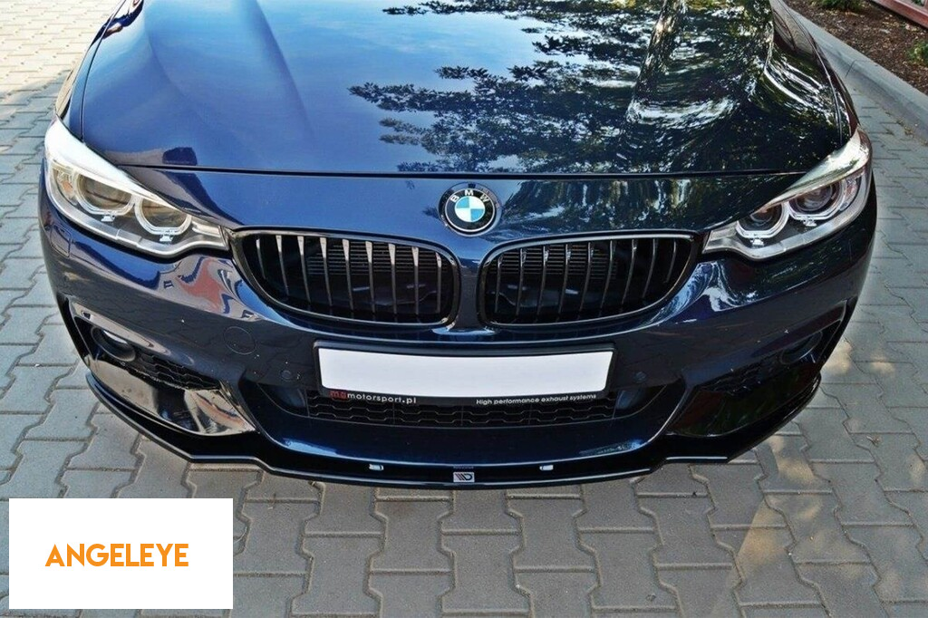 Spoiler Maxton Design versiunea 1 potrivit pentru bara frontală M Technik la BMW seria 4 F32 după 2013, lac negru