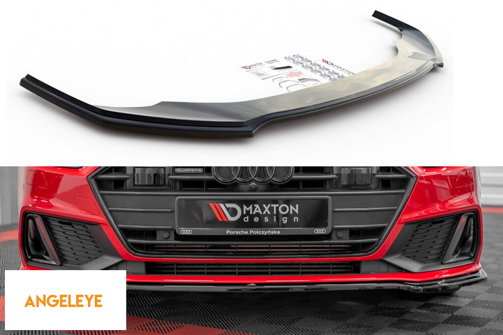 Spoiler Maxton Design versiunea 1 potrivit pentru bara frontală S-Line pe Audi A7 C8 după 2017, lac negru
