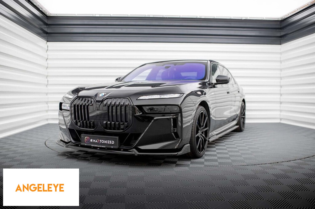 Spoiler Maxton Design versiunea 2 potrivit pentru bara de protecție frontală M a BMW Seria 7, M760E G70 după 2022, lac negru