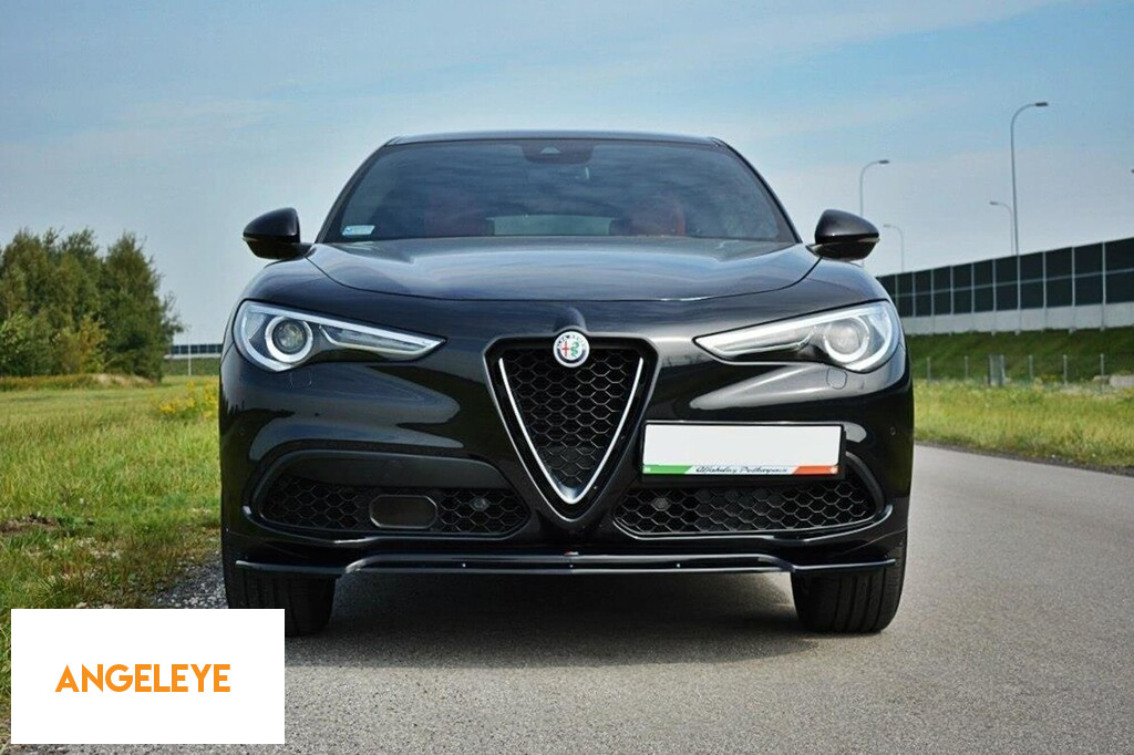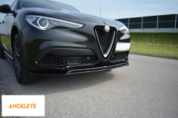 Spoiler Maxton Design versiunea 2 potrivit pentru bara frontală a Alfa Romeo Stelvio 2016-2020, lac negru