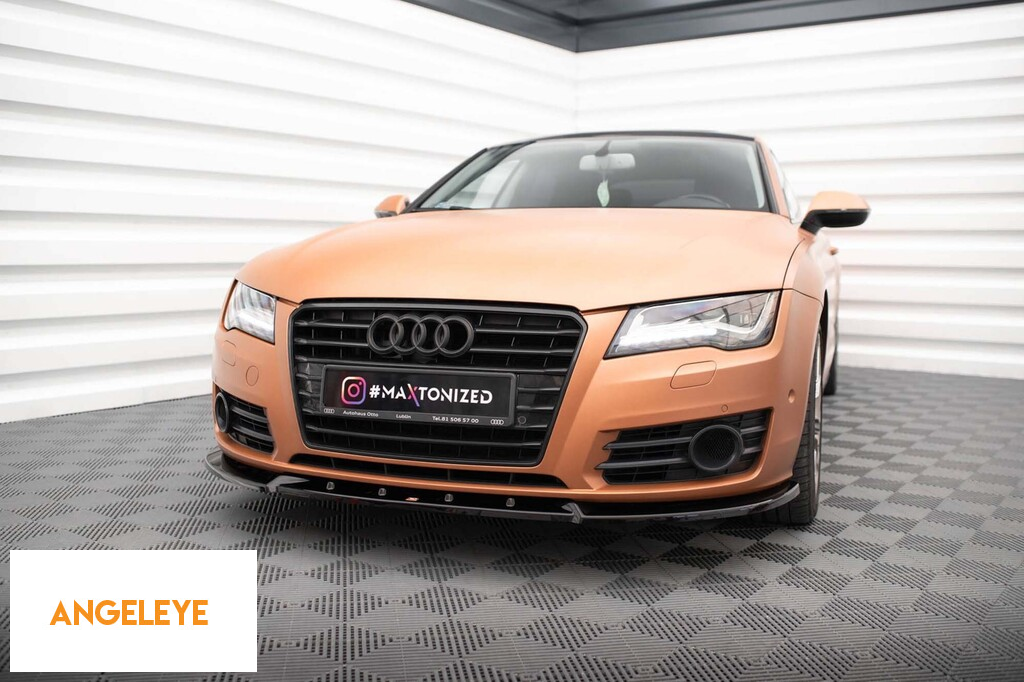 Spoiler Maxton Design versiunea 2 potrivit pentru bara frontală a Audi A7 C7 2010-2014, lac negru
