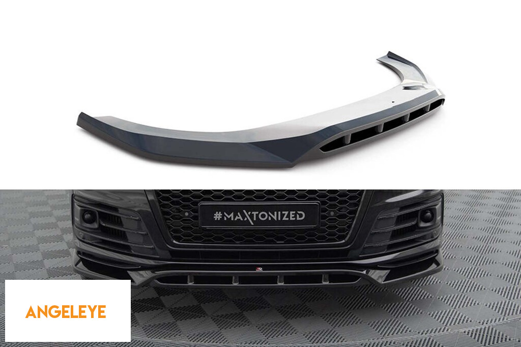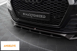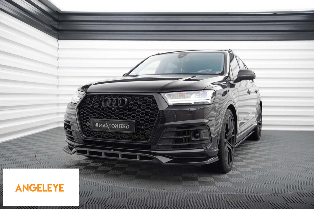 Spoiler Maxton Design versiunea 2 potrivit pentru bara frontală a Audi SQ7, Q7 S-Line 2016-2019, lac negru