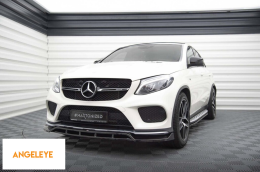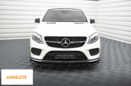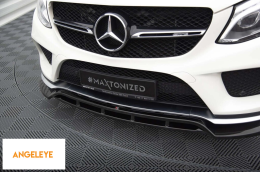 Spoiler Maxton Design versiunea 2 potrivit pentru bara frontală a Mercedes GLE Coupe 43 A Design, A Design-Line C292 2015-2019, lac negru