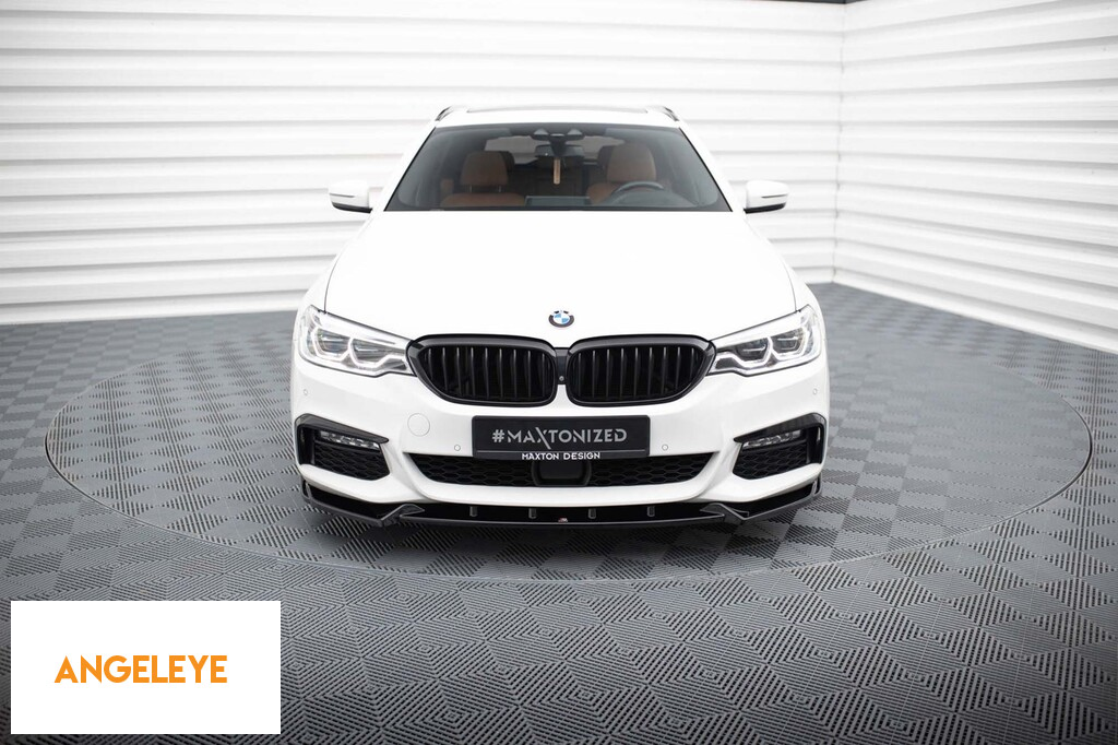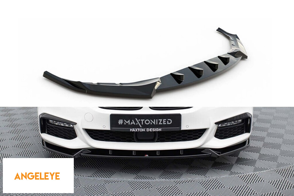 Spoiler Maxton Design versiunea 4 potrivit pentru bara de protecție frontală M a BMW Seria 5 G30 sedan, G31 break 2017-2020, lac negru