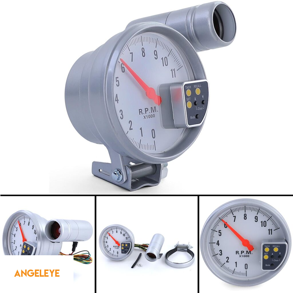 Tachometru de performanță de 5 inch, argintiu mat, cu lumină de schimbare și suport