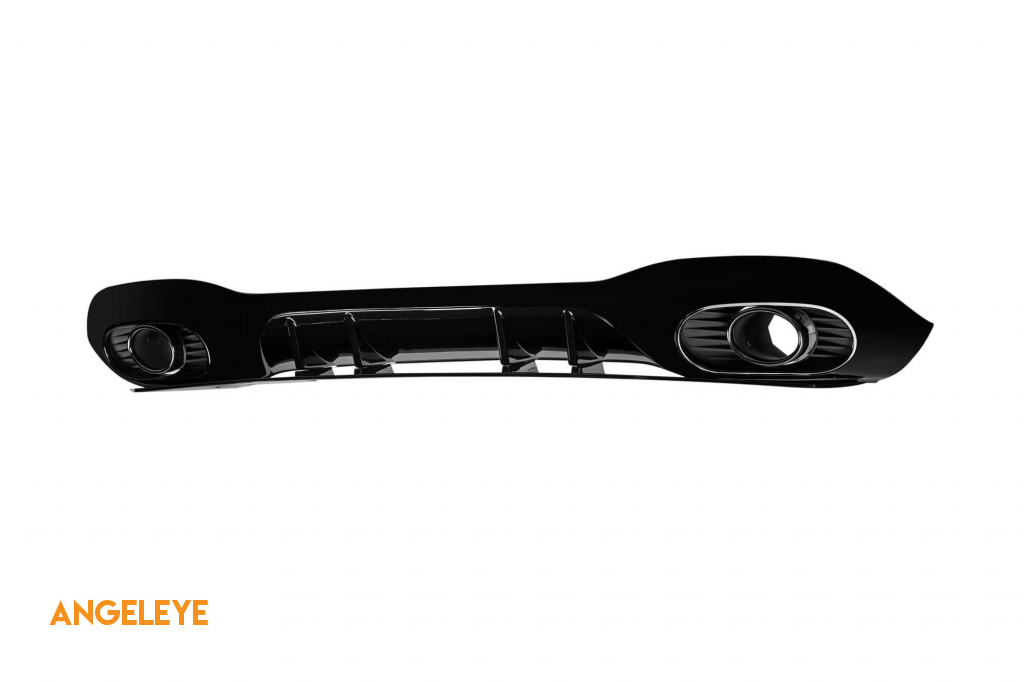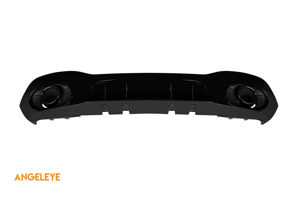 Rear diffuser suitable for tuning bumper, with dual openings for dual exhaust, made from high-quality ABS plastic. The diffuser fits perfectly. It gives a unique and different look to the vehicle.