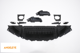 Bara fata echipata grilele laterale si grila centrala cu finisaj negru lucios, capacele pentru carligul de remorcare si capacele pentru sistemul de spalare al farurilor.