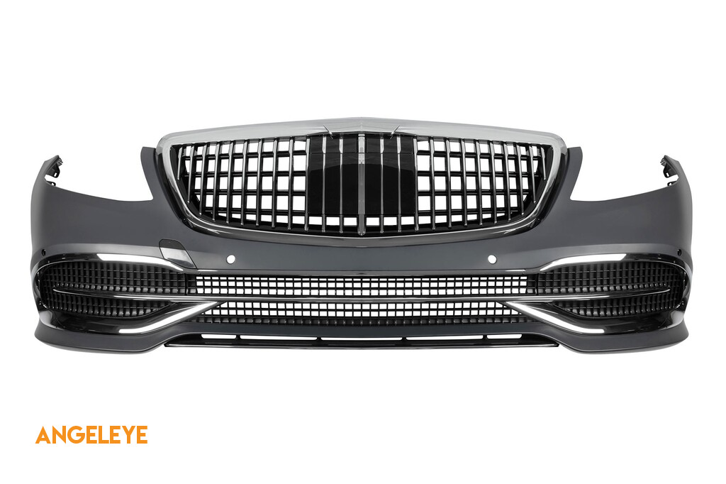 Bumper frontal tip Maybach, potrivit pentru domnii din clasa S W222 a gigantului auto german Mercedes. Aceasta nu este doar un alt bumper de tuning care pur și simplu aglomerează designul deja bine conturat al Mercedes-ului dumneavoastră. Elegant rafinat, cu linii agresive care subliniază esența primară a fiecărui automobil sport. Bumperul este fabricat din plastic ABS elastic, rezistent la impact și de înaltă calitate. Fiecare colț și deschidere a bumperului a fost procesat cu grijă pentru a evita margini ascuțite neplăcute, realizând astfel elementul perfect pentru o potrivire de 100%. Bumperul dispune de deschideri tăiate și aranjate cu precizie pentru sistemul de senzori de parcare al vehiculului dumneavoastră. Astfel, se minimizează intervențiile suplimentare din partea tehnicienilor.