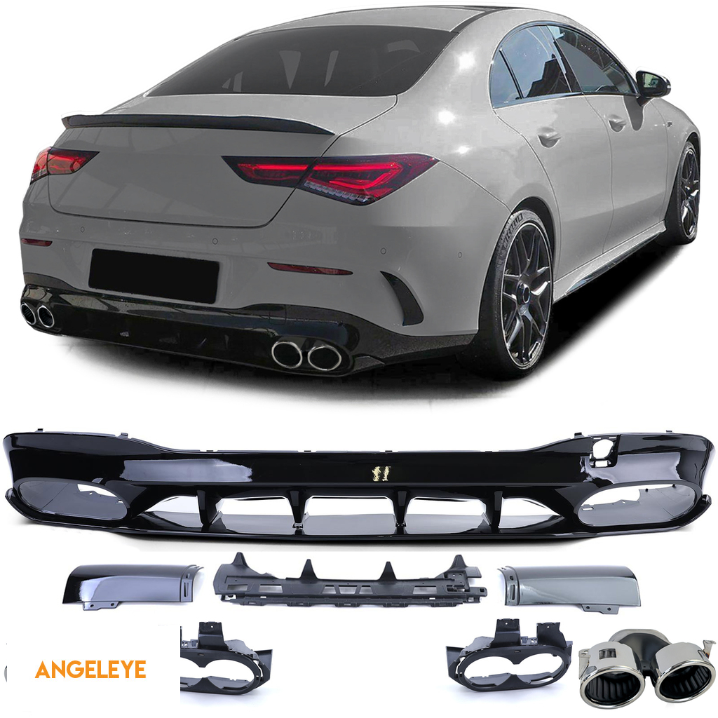Difuzor spate negru lucios + țevi de eșapament duble cromate, potrivit pentru Mercedes CLA C118 X118