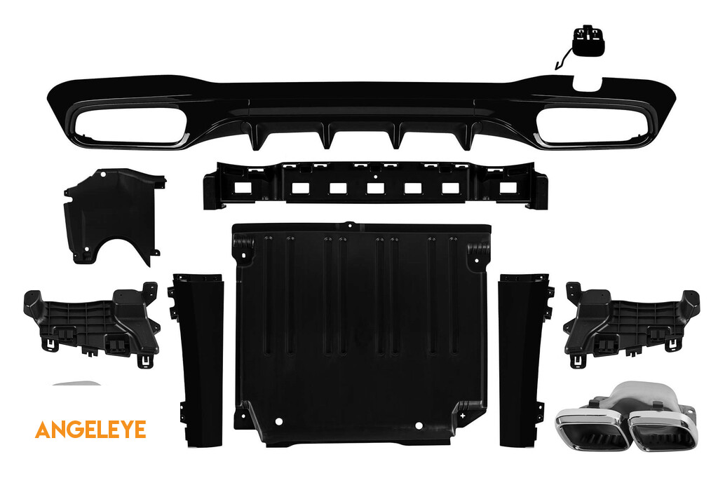 Difuzorul de tuning dispune de deschideri duble pe partea stângă și dreaptă. Aceste deschideri sunt potrivite pentru un capăt de evacuare dublu, așa cum este arătat în grafic. De asemenea, poate fi instalat un capăt de evacuare ovală.