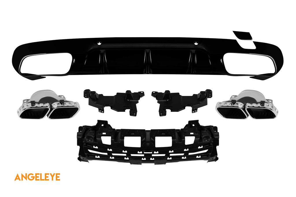 Difuzor tip CLS63 cu capete cromate potrivit pentru bara spate A Design pe Mercedes CLS C257 după 2018 -oo--oo-