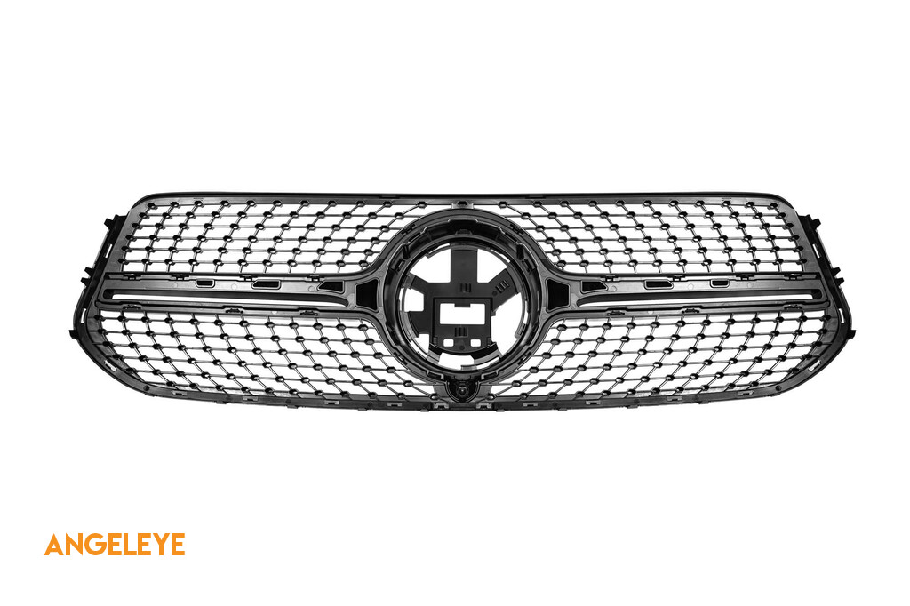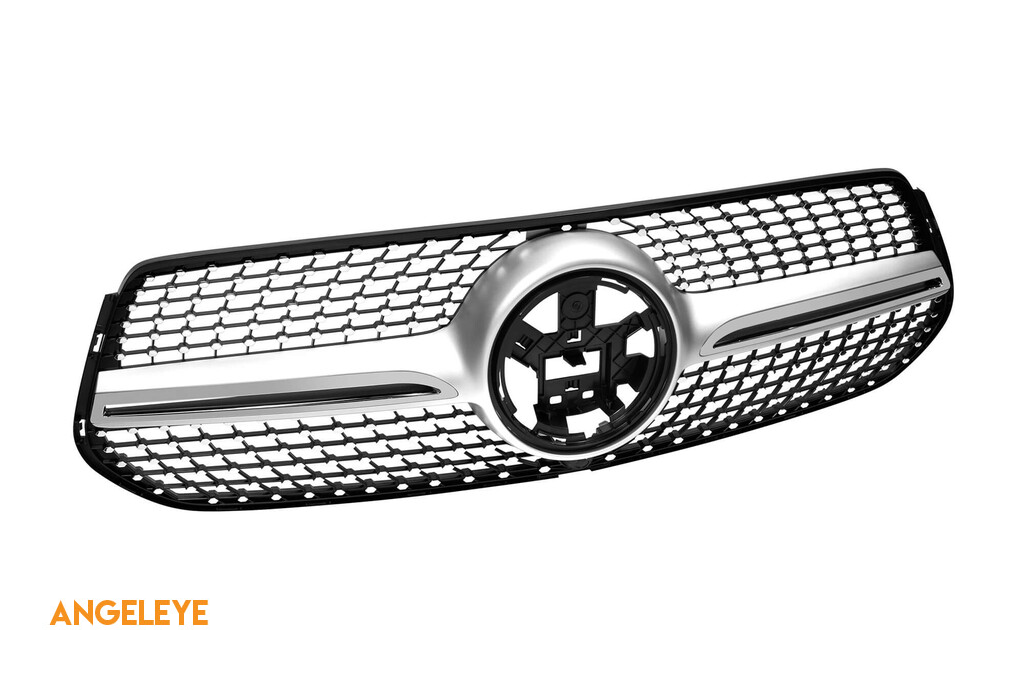 Grilă diamant cu crom/silver potrivită pentru Mercedes GLE W167, GLE coupe C167 după 2019-2023 cu orificiu pentru cameră, potrivită pentru modelul echipat cu bara de protecție frontală A Design