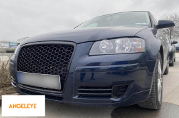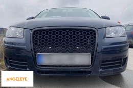 Grilă frontală de tip RS neagră, fără emblemă, potrivită pentru Audi A3 hatchback, Sportback 2005-2008