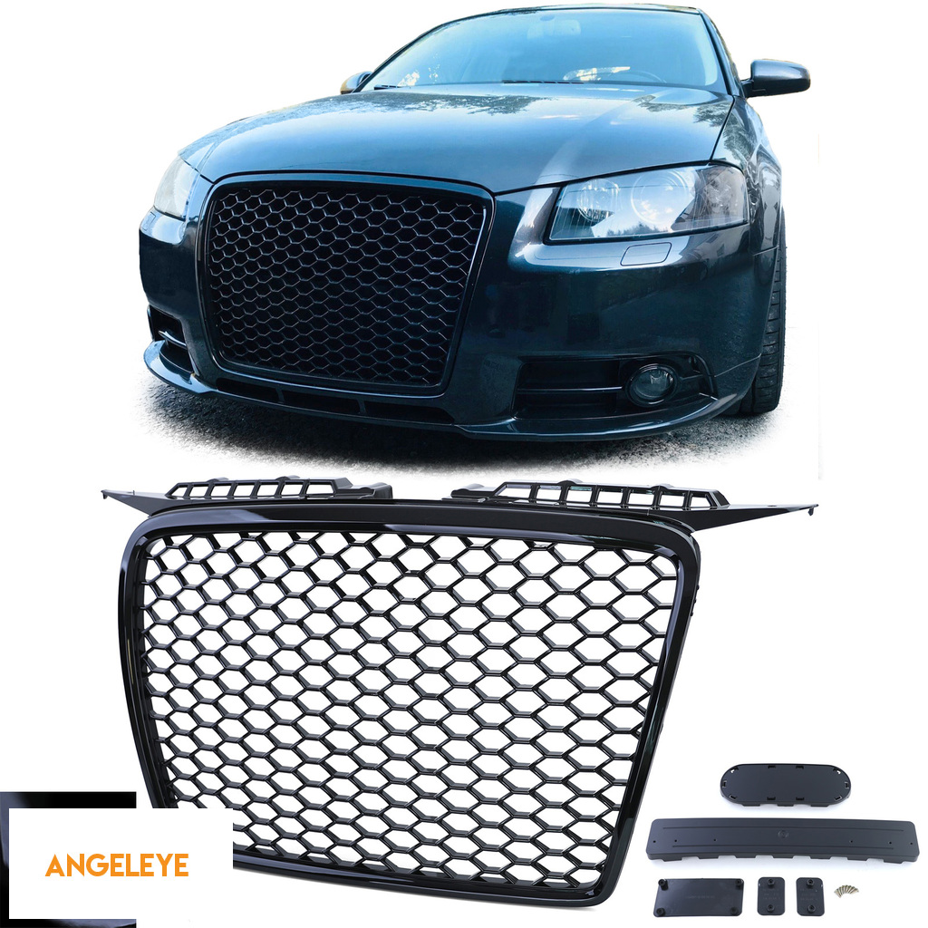 Grilă radiator cu fagure fără emblemă, neagră lucioasă, potrivită pentru Audi A3 8P 05-08