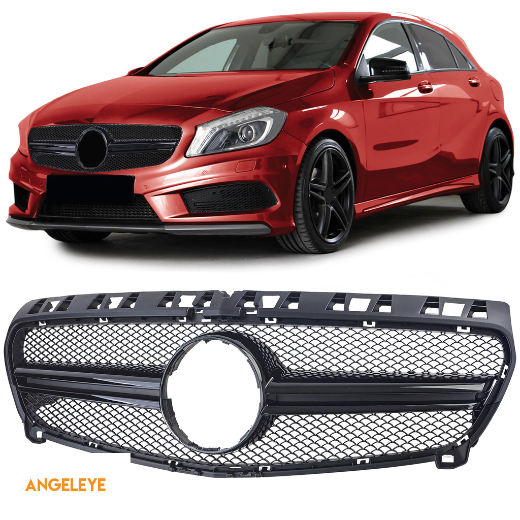 Grilă sport cu două bare negru lucios, potrivită pentru Mercedes A-Class W176 12-15