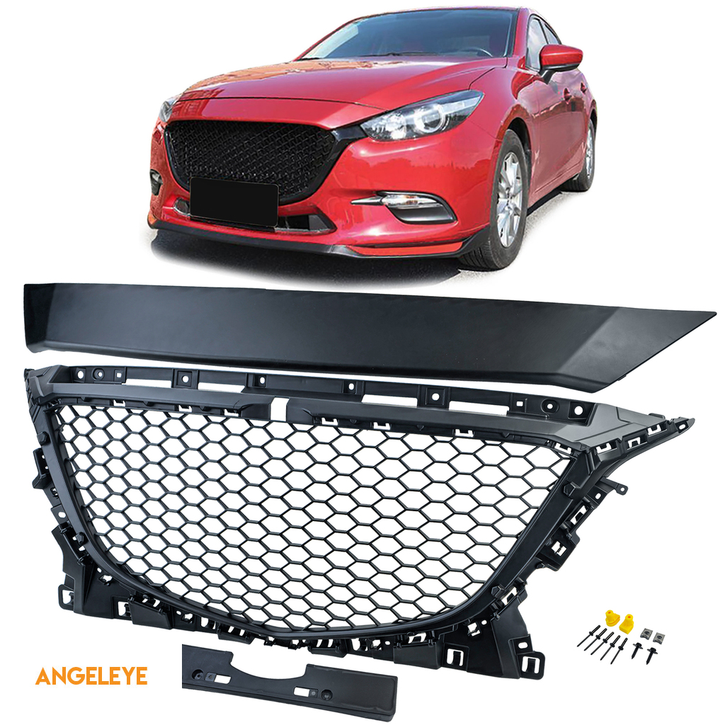 Grilă sport fără emblemă în design fagure negru, potrivită pentru Mazda 3 BM 2013-2017